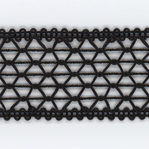 SHINDO社製(S.I.C.)クロシェットレーステープです。光沢感とネットのようなデザインが特徴のクロシェットレース調テープです。インテリアや小物、雑貨向けのご用途などにオススメの服飾資材です。※メートルカット品は、実物確認用のサンプルまたはご試作用途向けに販売をいたしております(数量「3」でお求めいただくと、3メートルを1本でお届け)。巻でのご購入前に必ずメートルカット品にて実物をご確認ください。