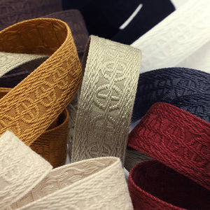 SHINDO社製(S.I.C.)ジャガードリボンです。SHINDO社パリ支店の企画リボンで、「先住民の文化」をテーマに幾何学柄として表現されている商品です。素材も綿100%ですので、カジュアルに衣料や雑貨向けのご用途にオススメのリボンです。※メートルカット品は、実物確認用のサンプルまたはご試作用途向けに販売をいたしております(数量「3」でお求めいただくと、3メートルを1本でお届け)。巻でのご購入前に必ずメートルカット品にて実物をご確認ください。