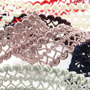 SHINDO社製(S.I.C.)トリミングブレードです。ポリエステルならではの物性の良さと、飽きがなく何にでも使用できるオーソドックスなデザインが特徴のブレードです。婦人服のジャケットなどアウターの縁取りに多く採用されております。また、カルトナージュやアクセサリーコードとして小物・雑貨向けに使用するのもオススメです。※メートルカット品は、実物確認用のサンプルまたはご試作用途向けに販売をいたしております(数量「3」でお求めいただくと、3メートルを1本でお届け)。巻でのご購入前に必ずメートルカット品にて実物をご確認ください。