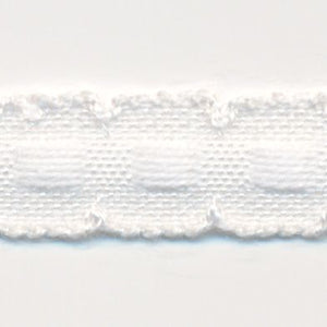 SHINDO社製(S.I.C.)チロルテープです。ボックスステッチが可愛らしく、またリボンの両端(上端と下端)に白いラインが入っているので、アクセントとして映えるリボンです。子供服や小物などの雑貨向けにオススメの服飾資材です。※メートルカット品は、実物確認用のサンプルまたはご試作用途向けに販売をいたしております(数量「3」でお求めいただくと、3メートルを1本でお届け)。巻でのご購入前に必ずメートルカット品にて実物をご確認ください。
