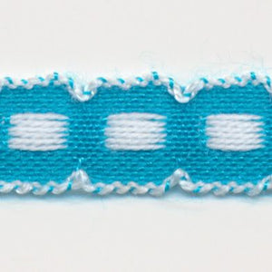 SHINDO社製(S.I.C.)チロルテープです。ボックスステッチが可愛らしく、またリボンの両端(上端と下端)に白いラインが入っているので、アクセントとして映えるリボンです。子供服や小物などの雑貨向けにオススメの服飾資材です。※メートルカット品は、実物確認用のサンプルまたはご試作用途向けに販売をいたしております(数量「3」でお求めいただくと、3メートルを1本でお届け)。巻でのご購入前に必ずメートルカット品にて実物をご確認ください。