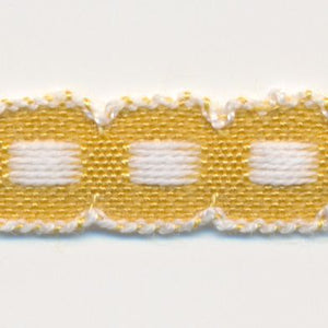SHINDO社製(S.I.C.)チロルテープです。ボックスステッチが可愛らしく、またリボンの両端(上端と下端)に白いラインが入っているので、アクセントとして映えるリボンです。子供服や小物などの雑貨向けにオススメの服飾資材です。※メートルカット品は、実物確認用のサンプルまたはご試作用途向けに販売をいたしております(数量「3」でお求めいただくと、3メートルを1本でお届け)。巻でのご購入前に必ずメートルカット品にて実物をご確認ください。
