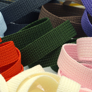 SHINDO社製(S.I.C.)ポリエステルシングルニットテープです。片面のニットテープとしては一番ベーシックなタイプで、ニット組織ならではの伸びがあり、カットソーの衿押さえやジャージのラインテープとして多くご採用いただいております。また、タオルなどの縁取りにも最適なニットテープです。※メートルカット品は、実物確認用のサンプルまたはご試作用途向けに販売をいたしております(数量「3」でお求めいただくと、3メートルを1本でお届け)。巻でのご購入前に必ずメートルカット品にて実物をご確認ください。