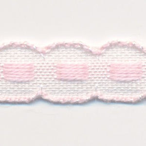 SHINDO社製(S.I.C.)チロルテープです。ボックスステッチが可愛らしく、またリボンの両端(上端と下端)に白いラインが入っているので、アクセントとして映えるリボンです。子供服や小物などの雑貨向けにオススメの服飾資材です。※メートルカット品は、実物確認用のサンプルまたはご試作用途向けに販売をいたしております(数量「3」でお求めいただくと、3メートルを1本でお届け)。巻でのご購入前に必ずメートルカット品にて実物をご確認ください。