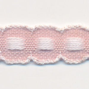 SHINDO社製(S.I.C.)チロルテープです。ボックスステッチが可愛らしく、またリボンの両端(上端と下端)に白いラインが入っているので、アクセントとして映えるリボンです。子供服や小物などの雑貨向けにオススメの服飾資材です。※メートルカット品は、実物確認用のサンプルまたはご試作用途向けに販売をいたしております(数量「3」でお求めいただくと、3メートルを1本でお届け)。巻でのご購入前に必ずメートルカット品にて実物をご確認ください。