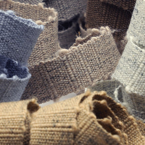 SHINDO社製(S.I.C.)メランジュスラブリボンです。黒と生成の棉を混ぜて紡いだ奥行きのあるメランジュ(杢調)とナチュラルな綿スラブを合わせた粗野感のあるリボンです。デニムやツイード生地に合わせるとランダムな節がリズムを生みアクセントになり、また粗野ながら、清楚で上品なイメージでの使用もオススメです。※メートルカット品は、実物確認用のサンプルまたはご試作用途向けに販売をいたしております(数量「3」でお求めいただくと、3メートルを1本でお届け)。巻でのご購入前に必ずメートルカット品にて実物をご確認ください。