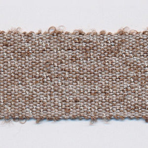 SHINDO社製(S.I.C.)ツイード風メタリックリボンです。緯糸にループ形状の糸(上品な程度のラメ混)を使い、経糸はポリエステルを使っているので、緯糸で意匠性を持たせ、経糸で過度なボリュームを押えた仕上がりになっている杢調のリボンです。ジャケットへの用途がメインになりますが、ボリュームを押えているのでウェスト部分のたたきテープや、ワンピースの腰リボンにもオススメです。※メートルカット品は、実物確認用のサンプルまたはご試作用途向けに販売をいたしております(数量「3」でお求めいただくと、3メートルを1本でお届け)。巻でのご購入前に必ずメートルカット品にて実物をご確認ください。