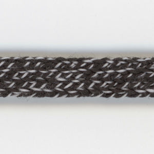 SHINDO社製(S.I.C.)の杢調平コード(袋紐)です。白糸が編み込まれた杢調(メランジュ)で温かみのある平紐です。袋状の組織(筒状)ですので結びやすく、また結び目が解けにくいので、パーカーのフード紐やスウェットのウエスト紐、靴紐、袋物の絞り紐などにオススメのコードです。※メートルカット品は、実物確認用のサンプルまたはご試作用途向けに販売をいたしております(数量「3」でお求めいただくと、3メートルを1本でお届け)。巻でのご購入前に必ずメートルカット品にて実物をご確認ください。