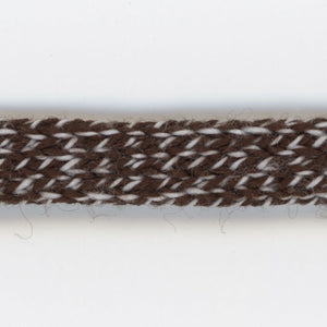 SHINDO社製(S.I.C.)の杢調平コード(袋紐)です。白糸が編み込まれた杢調(メランジュ)で温かみのある平紐です。袋状の組織(筒状)ですので結びやすく、また結び目が解けにくいので、パーカーのフード紐やスウェットのウエスト紐、靴紐、袋物の絞り紐などにオススメのコードです。※メートルカット品は、実物確認用のサンプルまたはご試作用途向けに販売をいたしております(数量「3」でお求めいただくと、3メートルを1本でお届け)。巻でのご購入前に必ずメートルカット品にて実物をご確認ください。