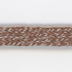SHINDO社製(S.I.C.)の杢調平コード(袋紐)です。白糸が編み込まれた杢調(メランジュ)で温かみのある平紐です。袋状の組織(筒状)ですので結びやすく、また結び目が解けにくいので、パーカーのフード紐やスウェットのウエスト紐、靴紐、袋物の絞り紐などにオススメのコードです。※メートルカット品は、実物確認用のサンプルまたはご試作用途向けに販売をいたしております(数量「3」でお求めいただくと、3メートルを1本でお届け)。巻でのご購入前に必ずメートルカット品にて実物をご確認ください。