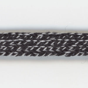 SHINDO社製(S.I.C.)の杢調平コード(袋紐)です。白糸が編み込まれた杢調(メランジュ)で温かみのある平紐です。袋状の組織(筒状)ですので結びやすく、また結び目が解けにくいので、パーカーのフード紐やスウェットのウエスト紐、靴紐、袋物の絞り紐などにオススメのコードです。※メートルカット品は、実物確認用のサンプルまたはご試作用途向けに販売をいたしております(数量「3」でお求めいただくと、3メートルを1本でお届け)。巻でのご購入前に必ずメートルカット品にて実物をご確認ください。