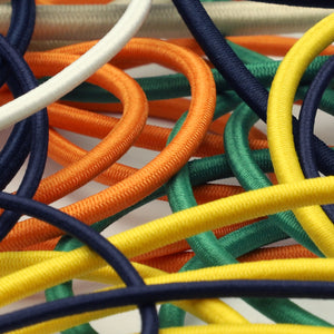 SHINDO社製(S.I.C.)のリサイクルポリエステルストレッチコード(ハードタイプ)です。リサイクルポリエステル糸と天然ゴムを使用し、しっかりとした伸び感と力強いキックバックが特長の丸紐に仕上げています。ソフトタイプに比べて締め付け感がしっかりしており、伸びたあとにきちんと戻ってほしい箇所に使いやすいタイプです。ホールド感や安定感を求める仕様にも向いています。ファスナースライダーやリュック・バッグの絞り紐、靴紐、アウターの袖口や裾などにはもちろん、しっかりとした存在感を活かしたデザイン用途にもおすすめです。環境に配慮した素材を取り入れながら、見た目・機能性・用途の広さを兼ね備えたストレッチコードです。22色展開、2mm・2.5mm・3mmのサイズから、用途に合わせてお選びいただけます。※メートルカット品は、実物確認用のサンプルまたはご試作用途向けに販売をいたしております(数量「3」でお求めいただくと、3メートルを1本でお届け)。巻でのご購入前に必ずメートルカット品にて実物をご確認ください。