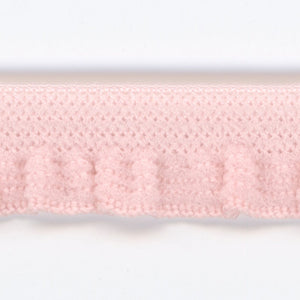 SHINDO社製(S.I.C.)フリルストレッチです。太めの糸でゆるく編み上げられた、柔らかで肌当たりの優しいニット組織の伸縮性フリルテープです。カジュアルやスポーツ衣料、子供服や雑貨向けなどのご用途にオススメです。※メートルカット品は、実物確認用のサンプルまたはご試作用途向けに販売をいたしております(数量「3」でお求めいただくと、3メートルを1本でお届け)。巻でのご購入前に必ずメートルカット品にて実物をご確認ください。
