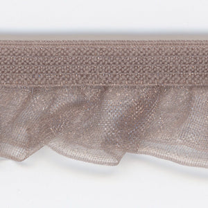 SHINDO社製(S.I.C.)レイヤードフリルストレッチです。透け感のあるオーガンジーを長さ違いで2段重ねにした伸縮性フリルテープで、ナイロン素材ならではの光沢感や軽やかさがあり、薄手の身生地との相性が良いのも特徴の一つです。カジュアル衣料や雑貨向けなどのご用途にオススメです。※メートルカット品は、実物確認用のサンプルまたはご試作用途向けに販売をいたしております(数量「3」でお求めいただくと、3メートルを1本でお届け)。巻でのご購入前に必ずメートルカット品にて実物をご確認ください。