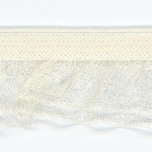 SHINDO社製(S.I.C.)レイヤードフリルストレッチです。透け感のあるオーガンジーを長さ違いで2段重ねにした伸縮性フリルテープで、ナイロン素材ならではの光沢感や軽やかさがあり、薄手の身生地との相性が良いのも特徴の一つです。カジュアル衣料や雑貨向けなどのご用途にオススメです。※メートルカット品は、実物確認用のサンプルまたはご試作用途向けに販売をいたしております(数量「3」でお求めいただくと、3メートルを1本でお届け)。巻でのご購入前に必ずメートルカット品にて実物をご確認ください。