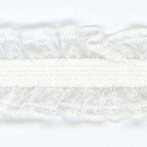 SHINDO社製(S.I.C.)ダブルフリルストレッチです。透け感のあるオーガンジーフリルの縁に2本のラインが施され、よりフリルのラインが強調された両端がフリル仕様の伸縮性テープです。ナイロン素材ならではの光沢感や軽やかさがあり、薄手の身生地との相性が良いのも特徴の一つです。カジュアル衣料や雑貨向けなどのご用途にオススメです。※メートルカット品は、実物確認用のサンプルまたはご試作用途向けに販売をいたしております(数量「3」でお求めいただくと、3メートルを1本でお届け)。巻でのご購入前に必ずメートルカット品にて実物をご確認ください。