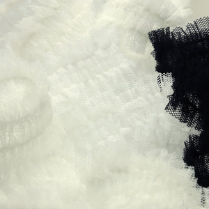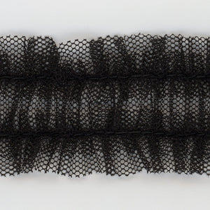 SHINDO社製(S.I.C.)チュールストレッチテープです。チュール生地にギャザーを寄せた伸縮性テープで、ボリューム感があり、舞台衣装や帽子の装飾としてお使いいただくとインパクトのあるデザインとなります。その他カジュアル衣料や雑貨向けなどのご用途にもオススメです。※メートルカット品は、実物確認用のサンプルまたはご試作用途向けに販売をいたしております(数量「3」でお求めいただくと、3メートルを1本でお届け)。巻でのご購入前に必ずメートルカット品にて実物をご確認ください。