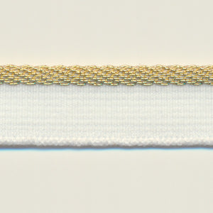 SHINDO社製(S.I.C.)メタリックストレッチパイピングです。パイピングの玉部分に金色と銀色、縫い代がそれぞれホワイトとブラックでご用意したオーソドックスなラメパイピングです。ラメ糸は比較的硬いため、通常のラメパイピングではカーブ分の縫製に難がありますが、こちらのテープは伸縮性がありますのでカーブにもついていき、縫製がしやすく、綺麗に仕上がります。ジャケットやアウター、レディース製品など布の裁ち目や合わせの装飾にオススメの資材です。※メートルカット品は、実物確認用のサンプルまたはご試作用途向けに販売をいたしております(数量「3」でお求めいただくと、3メートルを1本でお届け)。巻でのご購入前に必ずメートルカット品にて実物をご確認ください。