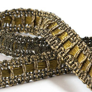 SHINDO社製(S.I.C.)ラメブレードです。ラメ糸と黒い糸で編み上げられたシックでゴージャスなブレードです。衿やポケットの装飾、インテリアや小物雑貨向けなどにもオススメです。※メートルカット品は、実物確認用のサンプルまたはご試作用途向けに販売をいたしております(数量「3」でお求めいただくと、3メートルを1本でお届け)。巻でのご購入前に必ずメートルカット品にて実物をご確認ください。