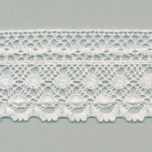 SHINDO社製(S.I.C.)トーションレースです。天然繊維の綿100%で作られた、素朴で温かみのあるナチュラルテイストでドット柄レースです。細番手の糸を使用しており、軽やかで繊細な風合いも特徴の一つで、子供服や雑貨向けのご用途におススメの資材です。また、染色や洗濯時の収縮を最小限に抑えるために、生成りを含む全てのカラーに防縮加工が施されておりますので、生地に縫い付けたレースが洗濯したらすごく縮んでしまった...(T_T) といった惨事を回避できます。※メートルカット品は、実物確認用のサンプルまたはご試作用途向けに販売をいたしております(数量「3」でお求めいただくと、3メートルを1本でお届け)。巻でのご購入前に必ずメートルカット品にて実物をご確認ください。