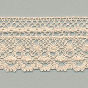 SHINDO社製(S.I.C.)トーションレースです。天然繊維の綿100%で作られた、素朴で温かみのあるナチュラルテイストでドット柄レースです。細番手の糸を使用しており、軽やかで繊細な風合いも特徴の一つで、子供服や雑貨向けのご用途におススメの資材です。また、染色や洗濯時の収縮を最小限に抑えるために、生成りを含む全てのカラーに防縮加工が施されておりますので、生地に縫い付けたレースが洗濯したらすごく縮んでしまった...(T_T) といった惨事を回避できます。※メートルカット品は、実物確認用のサンプルまたはご試作用途向けに販売をいたしております(数量「3」でお求めいただくと、3メートルを1本でお届け)。巻でのご購入前に必ずメートルカット品にて実物をご確認ください。