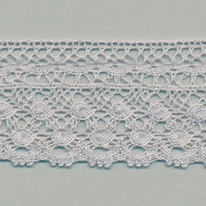 SHINDO社製(S.I.C.)トーションレースです。天然繊維の綿100%で作られた、素朴で温かみのあるナチュラルテイストでドット柄レースです。細番手の糸を使用しており、軽やかで繊細な風合いも特徴の一つで、子供服や雑貨向けのご用途におススメの資材です。また、染色や洗濯時の収縮を最小限に抑えるために、生成りを含む全てのカラーに防縮加工が施されておりますので、生地に縫い付けたレースが洗濯したらすごく縮んでしまった...(T_T) といった惨事を回避できます。※メートルカット品は、実物確認用のサンプルまたはご試作用途向けに販売をいたしております(数量「3」でお求めいただくと、3メートルを1本でお届け)。巻でのご購入前に必ずメートルカット品にて実物をご確認ください。