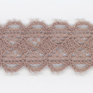 SHINDO社製(S.I.C.)トーションレースです。天然繊維の綿100%で作られた、素朴で温かみのあるナチュラルテイストで連なるダイヤ柄と両端ピコットのレースです。細番手の糸を使用しており、軽やかで繊細な風合いも特徴の一つで、子供服や雑貨向けのご用途におススメの資材です。また、染色や洗濯時の収縮を最小限に抑えるために、生成りを含む全てのカラーに防縮加工が施されておりますので、生地に縫い付けたレースが洗濯したらすごく縮んでしまった...(T_T) といった惨事を回避できます。※メートルカット品は、実物確認用のサンプルまたはご試作用途向けに販売をいたしております(数量「3」でお求めいただくと、3メートルを1本でお届け)。巻でのご購入前に必ずメートルカット品にて実物をご確認ください。