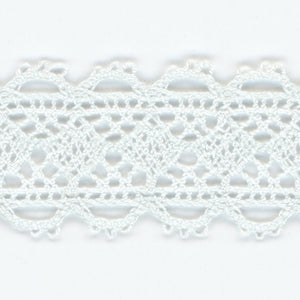 SHINDO社製(S.I.C.)トーションレースです。天然繊維の綿100%で作られた、素朴で温かみのあるナチュラルテイストで連なるダイヤ柄と両端ピコットのレースです。細番手の糸を使用しており、軽やかで繊細な風合いも特徴の一つで、子供服や雑貨向けのご用途におススメの資材です。また、染色や洗濯時の収縮を最小限に抑えるために、生成りを含む全てのカラーに防縮加工が施されておりますので、生地に縫い付けたレースが洗濯したらすごく縮んでしまった...(T_T) といった惨事を回避できます。※メートルカット品は、実物確認用のサンプルまたはご試作用途向けに販売をいたしております(数量「3」でお求めいただくと、3メートルを1本でお届け)。巻でのご購入前に必ずメートルカット品にて実物をご確認ください。