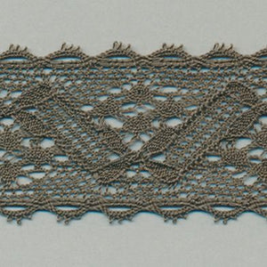 SHINDO社製(S.I.C.)トーションレースです。天然繊維の綿100%で作られた、素朴で温かみのあるナチュラルテイストでジグザグラインとリボンモチーフのレースです。細番手の糸を使用しており、軽やかで繊細な風合いも特徴の一つで、子供服や雑貨向けのご用途におススメの資材です。また、染色や洗濯時の収縮を最小限に抑えるために、生成りを含む全てのカラーに防縮加工が施されておりますので、生地に縫い付けたレースが洗濯したらすごく縮んでしまった...(T_T) といった惨事を回避できます。※メートルカット品は、実物確認用のサンプルまたはご試作用途向けに販売をいたしております(数量「3」でお求めいただくと、3メートルを1本でお届け)。巻でのご購入前に必ずメートルカット品にて実物をご確認ください。