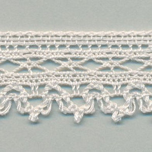 SHINDO社製(S.I.C.)トーションレースです。天然繊維の綿100%で作られた、素朴で温かみのあるナチュラルテイストで片側がピコットラインのレースです。細番手の糸を使用しており、軽やかで繊細な風合いも特徴の一つで、子供服や雑貨向けのご用途におススメの資材です。また、染色や洗濯時の収縮を最小限に抑えるために、生成りを含む全てのカラーに防縮加工が施されておりますので、生地に縫い付けたレースが洗濯したらすごく縮んでしまった...(T_T) といった惨事を回避できます。※メートルカット品は、実物確認用のサンプルまたはご試作用途向けに販売をいたしております(数量「3」でお求めいただくと、3メートルを1本でお届け)。巻でのご購入前に必ずメートルカット品にて実物をご確認ください。