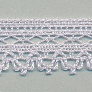 SHINDO社製(S.I.C.)トーションレースです。天然繊維の綿100%で作られた、素朴で温かみのあるナチュラルテイストで片側がピコットラインのレースです。細番手の糸を使用しており、軽やかで繊細な風合いも特徴の一つで、子供服や雑貨向けのご用途におススメの資材です。また、染色や洗濯時の収縮を最小限に抑えるために、生成りを含む全てのカラーに防縮加工が施されておりますので、生地に縫い付けたレースが洗濯したらすごく縮んでしまった...(T_T) といった惨事を回避できます。※メートルカット品は、実物確認用のサンプルまたはご試作用途向けに販売をいたしております(数量「3」でお求めいただくと、3メートルを1本でお届け)。巻でのご購入前に必ずメートルカット品にて実物をご確認ください。