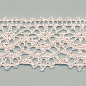 SHINDO社製(S.I.C.)トーションレースです。天然繊維の綿100%で作られた、素朴で温かみのあるナチュラルテイストで規則的で細かなレースホールが特徴のレースです。細番手の糸を使用しており、軽やかで繊細な風合いも特徴の一つで、子供服や雑貨向けのご用途におススメの資材です。また、染色や洗濯時の収縮を最小限に抑えるために、生成りを含む全てのカラーに防縮加工が施されておりますので、生地に縫い付けたレースが洗濯したらすごく縮んでしまった...(T_T) といった惨事を回避できます。※メートルカット品は、実物確認用のサンプルまたはご試作用途向けに販売をいたしております(数量「3」でお求めいただくと、3メートルを1本でお届け)。巻でのご購入前に必ずメートルカット品にて実物をご確認ください。