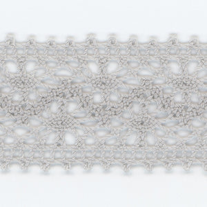 SHINDO社製(S.I.C.)トーションレースです。天然繊維の綿100%で作られた、素朴で温かみのあるナチュラルテイストでフローラルデザインのレースです。細番手の糸を使用しており、軽やかで繊細な風合いも特徴の一つで、子供服や雑貨向けのご用途におススメの資材です。また、染色や洗濯時の収縮を最小限に抑えるために、生成りを含む全てのカラーに防縮加工が施されておりますので、生地に縫い付けたレースが洗濯したらすごく縮んでしまった...(T_T) といった惨事を回避できます。※メートルカット品は、実物確認用のサンプルまたはご試作用途向けに販売をいたしております(数量「3」でお求めいただくと、3メートルを1本でお届け)。巻でのご購入前に必ずメートルカット品にて実物をご確認ください。