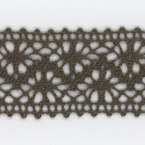 SHINDO社製(S.I.C.)トーションレースです。天然繊維の綿100%で作られた、素朴で温かみのあるナチュラルテイストでフローラルデザインのレースです。細番手の糸を使用しており、軽やかで繊細な風合いも特徴の一つで、子供服や雑貨向けのご用途におススメの資材です。また、染色や洗濯時の収縮を最小限に抑えるために、生成りを含む全てのカラーに防縮加工が施されておりますので、生地に縫い付けたレースが洗濯したらすごく縮んでしまった...(T_T) といった惨事を回避できます。※メートルカット品は、実物確認用のサンプルまたはご試作用途向けに販売をいたしております(数量「3」でお求めいただくと、3メートルを1本でお届け)。巻でのご購入前に必ずメートルカット品にて実物をご確認ください。