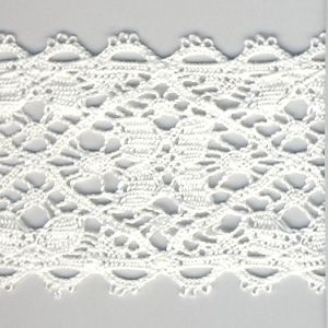 SHINDO社製(S.I.C.)トーションレースです。天然繊維の綿100%で作られた、素朴で温かみのあるナチュラルテイストで両側ピコットのバタフライデザインが特徴のレースです。細番手の糸を使用しており、軽やかで繊細な風合いも特徴の一つで、子供服や雑貨向けのご用途におススメの資材です。また、染色や洗濯時の収縮を最小限に抑えるために、生成りを含む全てのカラーに防縮加工が施されておりますので、生地に縫い付けたレースが洗濯したらすごく縮んでしまった...(T_T) といった惨事を回避できます。※メートルカット品は、実物確認用のサンプルまたはご試作用途向けに販売をいたしております(数量「3」でお求めいただくと、3メートルを1本でお届け)。巻でのご購入前に必ずメートルカット品にて実物をご確認ください。
