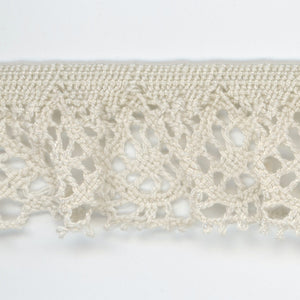 SHINDO社製(S.I.C.)ストレッチトーションレースです。伸縮性のあるフリルレースで、細番手の糸を使用しており、軽やかで繊細な風合いがあります。子供服や雑貨向けのご用途におススメの資材です。また、染色や洗濯時の収縮を最小限に抑えるために、生成りを含む全てのカラーに防縮加工が施されておりますので、生地に縫い付けたレースが洗濯したらすごく縮んでしまった...(T_T) といった惨事を回避できます。※メートルカット品は、実物確認用のサンプルまたはご試作用途向けに販売をいたしております(数量「3」でお求めいただくと、3メートルを1本でお届け)。巻でのご購入前に必ずメートルカット品にて実物をご確認ください。