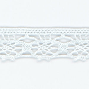 SHINDO社製(S.I.C.)トーションレースです。天然繊維の綿100%で作られた、素朴で温かみのあるナチュラルで和テイストのレースです。細番手の糸を使用しており、軽やかで繊細な風合いも特徴の一つで、子供服や雑貨向けのご用途におススメの資材です。また、染色や洗濯時の収縮を最小限に抑えるために、生成りを含む全てのカラーに防縮加工が施されておりますので、生地に縫い付けたレースが洗濯したらすごく縮んでしまった...(T_T) といった惨事を回避できます。※メートルカット品は、実物確認用のサンプルまたはご試作用途向けに販売をいたしております(数量「3」でお求めいただくと、3メートルを1本でお届け)。巻でのご購入前に必ずメートルカット品にて実物をご確認ください。