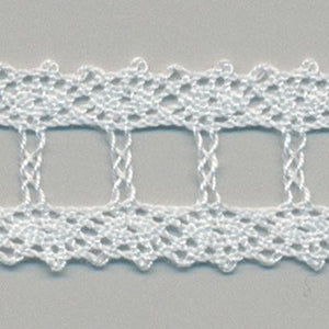 SHINDO社製(S.I.C.)トーションレースです。天然繊維の綿100%で作られた、素朴で温かみのあるナチュラルテイストでハシゴデザインが特徴のレースです。細番手の糸を使用しており、軽やかで繊細な風合いも特徴の一つで、子供服や雑貨向けのご用途におススメの資材です。また、染色や洗濯時の収縮を最小限に抑えるために、生成りを含む全てのカラーに防縮加工が施されておりますので、生地に縫い付けたレースが洗濯したらすごく縮んでしまった...(T_T) といった惨事を回避できます。※メートルカット品は、実物確認用のサンプルまたはご試作用途向けに販売をいたしております(数量「3」でお求めいただくと、3メートルを1本でお届け)。巻でのご購入前に必ずメートルカット品にて実物をご確認ください。