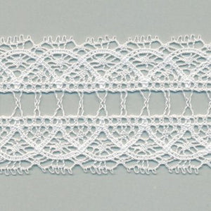 SHINDO社製(S.I.C.)トーションレースです。天然繊維の綿100%で作られた、素朴で温かみのあるナチュラルテイストでハシゴデザインが特徴のレースです。細番手の糸を使用しており、軽やかで繊細な風合いも特徴の一つで、子供服や雑貨向けのご用途におススメの資材です。また、染色や洗濯時の収縮を最小限に抑えるために、生成りを含む全てのカラーに防縮加工が施されておりますので、生地に縫い付けたレースが洗濯したらすごく縮んでしまった...(T_T) といった惨事を回避できます。※メートルカット品は、実物確認用のサンプルまたはご試作用途向けに販売をいたしております(数量「3」でお求めいただくと、3メートルを1本でお届け)。巻でのご購入前に必ずメートルカット品にて実物をご確認ください。