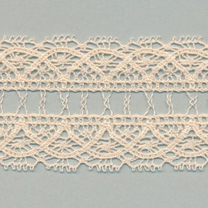 SHINDO社製(S.I.C.)トーションレースです。天然繊維の綿100%で作られた、素朴で温かみのあるナチュラルテイストでハシゴデザインが特徴のレースです。細番手の糸を使用しており、軽やかで繊細な風合いも特徴の一つで、子供服や雑貨向けのご用途におススメの資材です。また、染色や洗濯時の収縮を最小限に抑えるために、生成りを含む全てのカラーに防縮加工が施されておりますので、生地に縫い付けたレースが洗濯したらすごく縮んでしまった...(T_T) といった惨事を回避できます。※メートルカット品は、実物確認用のサンプルまたはご試作用途向けに販売をいたしております(数量「3」でお求めいただくと、3メートルを1本でお届け)。巻でのご購入前に必ずメートルカット品にて実物をご確認ください。