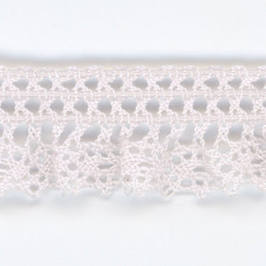 • SHINDO社製(S.I.C.)ストレッチトーションレースです。伸縮性のある小ぶりなフリルレースで、細番手の糸を使用しており、軽やかで繊細な風合いがあります。子供服や雑貨向けのご用途におススメの資材です。また、染色や洗濯時の収縮を最小限に抑えるために、生成りを含む全てのカラーに防縮加工が施されておりますので、生地に縫い付けたレースが洗濯したらすごく縮んでしまった...(T_T) といった惨事を回避できます。※メートルカット品は、実物確認用のサンプルまたはご試作用途向けに販売をいたしております(数量「3」でお求めいただくと、3メートルを1本でお届け)。巻でのご購入前に必ずメートルカット品にて実物をご確認ください。