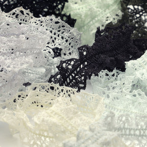 SHINDO社製(S.I.C.)ストレッチトーションレースです。伸縮性のある両側フリルのシンプルなデザインのレースで、細番手の糸を使用しており、軽やかで繊細な風合いがあります。子供服や雑貨向けのご用途におススメの資材です。また、染色や洗濯時の収縮を最小限に抑えるために、生成りを含む全てのカラーに防縮加工が施されておりますので、生地に縫い付けたレースが洗濯したらすごく縮んでしまった...(T_T) といった惨事を回避できます。※メートルカット品は、実物確認用のサンプルまたはご試作用途向けに販売をいたしております(数量「3」でお求めいただくと、3メートルを1本でお届け)。巻でのご購入前に必ずメートルカット品にて実物をご確認ください。