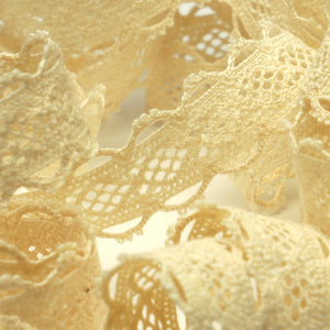 SHINDO社製(S.I.C.)オーガニックコットントーションレースです。2~3年以上有害な農薬・肥料を使用しない等、オーガニック農産物などの生産方法基準を満たした実践農地で、厳格な基準を守って育てられた綿花のみを使用したレース(C/#00は無染色)です。カジュアルや子供服、ベビー用品や雑貨向けのご用途におススメの資材です。※メートルカット品は、実物確認用のサンプルまたはご試作用途向けに販売をいたしております(数量「3」でお求めいただくと、3メートルを1本でお届け)。巻でのご購入前に必ずメートルカット品にて実物をご確認ください。