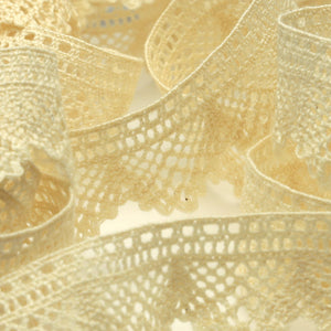 SHINDO社製(S.I.C.)オーガニックコットントーションレースです。2~3年以上有害な農薬・肥料を使用しない等、オーガニック農産物などの生産方法基準を満たした実践農地で、厳格な基準を守って育てられた綿花のみを使用したレース(C/#00は無染色)です。カジュアルや子供服、ベビー用品や雑貨向けのご用途におススメの資材です。※メートルカット品は、実物確認用のサンプルまたはご試作用途向けに販売をいたしております(数量「3」でお求めいただくと、3メートルを1本でお届け)。巻でのご購入前に必ずメートルカット品にて実物をご確認ください。