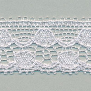• SHINDO社製(S.I.C.)リバートリミングレースです。緻密で細やかな2段のドット模様が特徴で、リバーレース織機は使用する糸数も多く、構造が複雑なため生産するには高い技術力が必要とされる技法の希少性の高いレースです。レディース衣料やダンス衣装、インテリアなどの雑貨向けのご用途にオススメです。また、染色や洗濯時の収縮を最小限に抑えるために、生成りを含む全てのカラーに防縮加工が施されておりますので、生地に縫い付けたレースが洗濯したらすごく縮んでしまった...(T_T) といった惨事を回避できます。※メートルカット品は、実物確認用のサンプルまたはご試作用途向けに販売をいたしております(数量「3」でお求めいただくと、3メートルを1本でお届け)。巻でのご購入前に必ずメートルカット品にて実物をご確認ください。