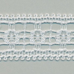 SHINDO社製(S.I.C.)リバートリミングレースです。緻密で細やかなスクエアデザインが特徴で、リバーレース織機は使用する糸数も多く、構造が複雑なため生産するには高い技術力が必要とされる技法の希少性の高いレースです。レディース衣料やダンス衣装、インテリアなどの雑貨向けのご用途にオススメです。また、染色や洗濯時の収縮を最小限に抑えるために、生成りを含む全てのカラーに防縮加工が施されておりますので、生地に縫い付けたレースが洗濯したらすごく縮んでしまった...(T_T) といった惨事を回避できます。※メートルカット品は、実物確認用のサンプルまたはご試作用途向けに販売をいたしております(数量「3」でお求めいただくと、3メートルを1本でお届け)。巻でのご購入前に必ずメートルカット品にて実物をご確認ください。