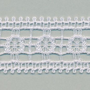 SHINDO社製(S.I.C.)リバートリミングレースです。緻密で細やかなスクエアデザインが特徴で、リバーレース織機は使用する糸数も多く、構造が複雑なため生産するには高い技術力が必要とされる技法の希少性の高いレースです。レディース衣料やダンス衣装、インテリアなどの雑貨向けのご用途にオススメです。また、染色や洗濯時の収縮を最小限に抑えるために、生成りを含む全てのカラーに防縮加工が施されておりますので、生地に縫い付けたレースが洗濯したらすごく縮んでしまった...(T_T) といった惨事を回避できます。※メートルカット品は、実物確認用のサンプルまたはご試作用途向けに販売をいたしております(数量「3」でお求めいただくと、3メートルを1本でお届け)。巻でのご購入前に必ずメートルカット品にて実物をご確認ください。
