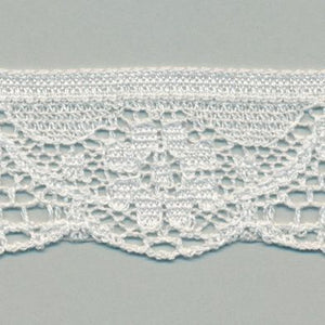 SHINDO社製(S.I.C.)リバートリミングレースです。緻密で細やかなフローラル模様が特徴で、リバーレース織機は使用する糸数も多く、構造が複雑なため生産するには高い技術力が必要とされる技法の希少性の高いレースです。レディース衣料やダンス衣装、インテリアなどの雑貨向けのご用途にオススメです。また、染色や洗濯時の収縮を最小限に抑えるために、生成りを含む全てのカラーに防縮加工が施されておりますので、生地に縫い付けたレースが洗濯したらすごく縮んでしまった...(T_T) といった惨事を回避できます。※メートルカット品は、実物確認用のサンプルまたはご試作用途向けに販売をいたしております(数量「3」でお求めいただくと、3メートルを1本でお届け)。巻でのご購入前に必ずメートルカット品にて実物をご確認ください。