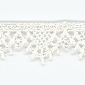 SHINDO社製(S.I.C.)ケミカルエンブロイダリーレースです。刺繍でありながら糸を編んだような透け感が特徴の片側ピコットレースです。カジュアル衣料やダンス衣装、子供服、インテリア雑貨などのご用途向けにオススメです。また、染色や洗濯時の収縮を最小限に抑えるために、生成りを含む全てのカラーに防縮加工が施されておりますので、生地に縫い付けたレースが洗濯したらすごく縮んでしまった...(T_T) といった惨事を回避できます。※メートルカット品は、実物確認用のサンプルまたはご試作用途向けに販売をいたしております(数量「3」でお求めいただくと、3メートルを1本でお届け)。巻でのご購入前に必ずメートルカット品にて実物をご確認ください。