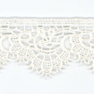 SHINDO社製(S.I.C.)ケミカルエンブロイダリーレースです。刺繍でありながら糸を編んだような透け感が特徴の片側ピコットレースです。カジュアル衣料やダンス衣装、子供服、インテリア雑貨などのご用途向けにオススメです。また、染色や洗濯時の収縮を最小限に抑えるために、生成りを含む全てのカラーに防縮加工が施されておりますので、生地に縫い付けたレースが洗濯したらすごく縮んでしまった...(T_T) といった惨事を回避できます。※メートルカット品は、実物確認用のサンプルまたはご試作用途向けに販売をいたしております(数量「3」でお求めいただくと、3メートルを1本でお届け)。巻でのご購入前に必ずメートルカット品にて実物をご確認ください。